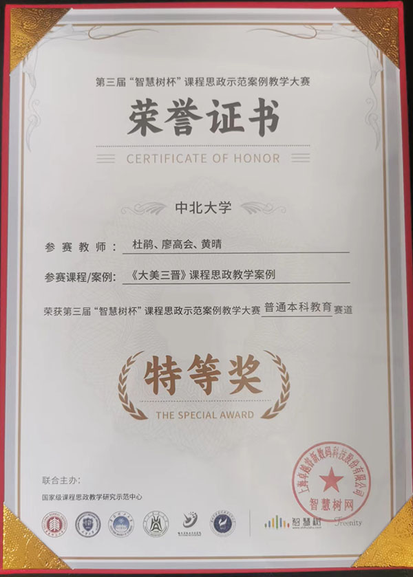 近日,第三届“智慧树杯”课程思政示范案例大赛落下帷幕,我校《大美三晋》课程荣获本科教育赛道特等奖,也是我省在本届该赛道获此殊荣的唯一课程思政示范案例,再一次展现了我校课程思政建设成效。