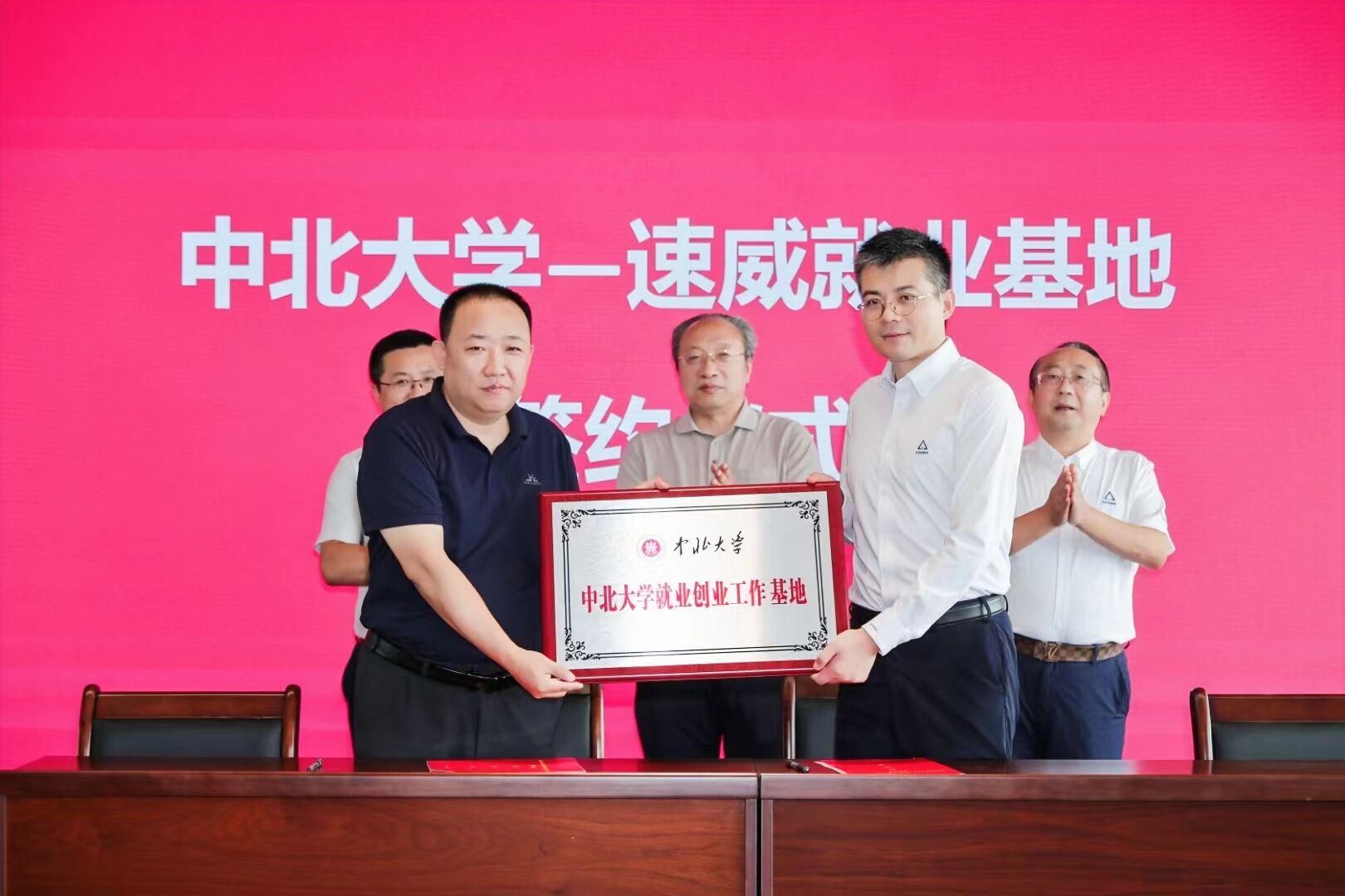 9月28日,“中北大学就业创业工作基地”签约授牌仪式在我校校友企业——贵州速威宇航合金材料有限公司举行。招就部相关负责人与我校校友、贵州速威董事长吴春春代表校企双方签约。
