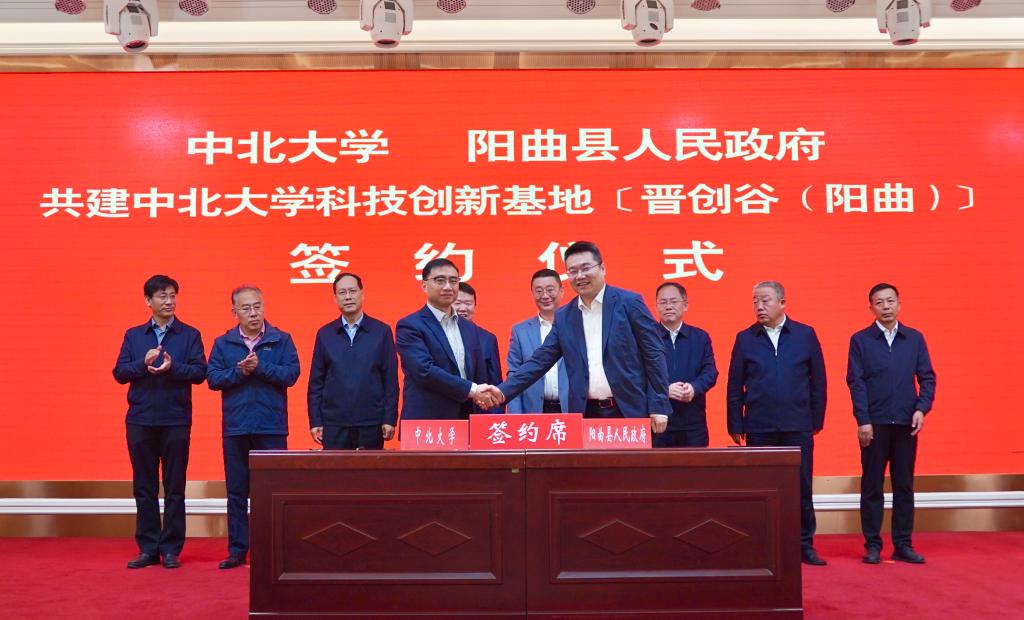 10月17日,我校与阳曲县举行共建中北大学科技创新基地[晋创谷(阳曲)]合作签约仪式。校党委书记沈兴全、校长陈钱,阳曲县县委书记李京京、县长姬发军出席。校领导贾维河、苏铁熊 、来志斌参加。签约仪式由阳曲县人大常委会主任王志勇主持。