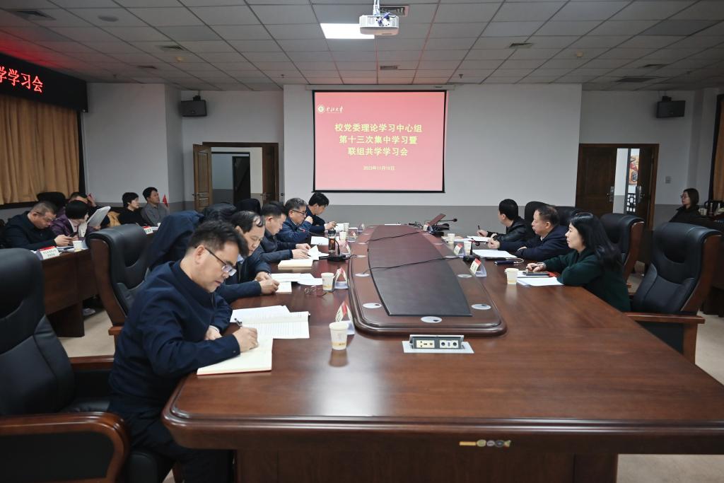 11月15日下午,校党委理论学习中心组第十三次集中学习暨联组共学学习会举行。省委教育工委列席旁听工作组组长、山西财经大学党委副书记张永德,山西财经大学党委常委、宣传统战部部长胡玥,宣传统战部副部长梁兴凯到会指导。校党委理论学习中心组成员、马克思主义学院党委理论学习中心组成员和毛概教研室教工党支部成员、学校二级党组织理论学习中心组示范点相关负责人参加了学习。校党委书记沈兴全主持会议。