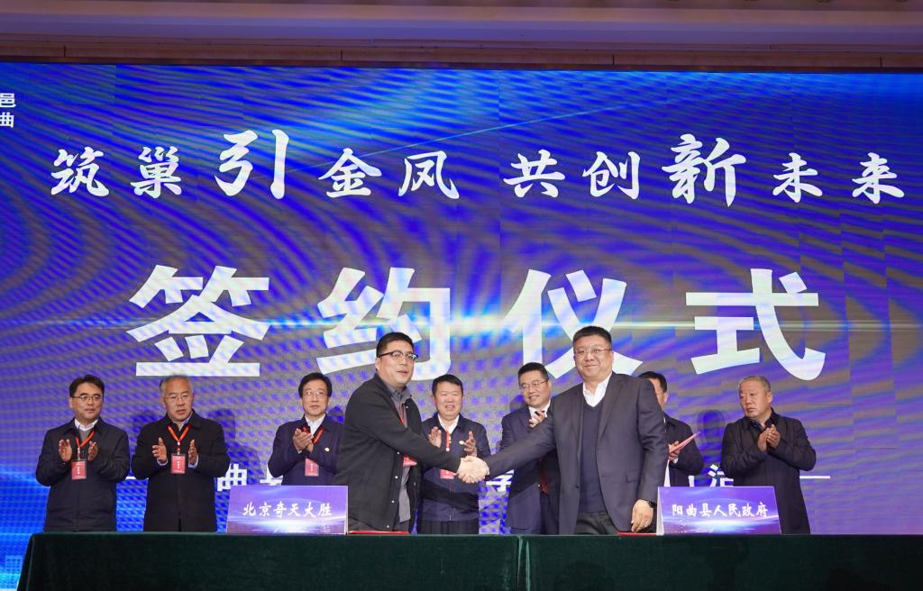 北京奇天大胜网络、深圳喜德盛碳纤维、北京晟通启富新能源、山西国牧科技4个中北大学校友企业与阳曲县签署项目合作协议,同时还有20余家校友企业与阳曲县签署合作意向。