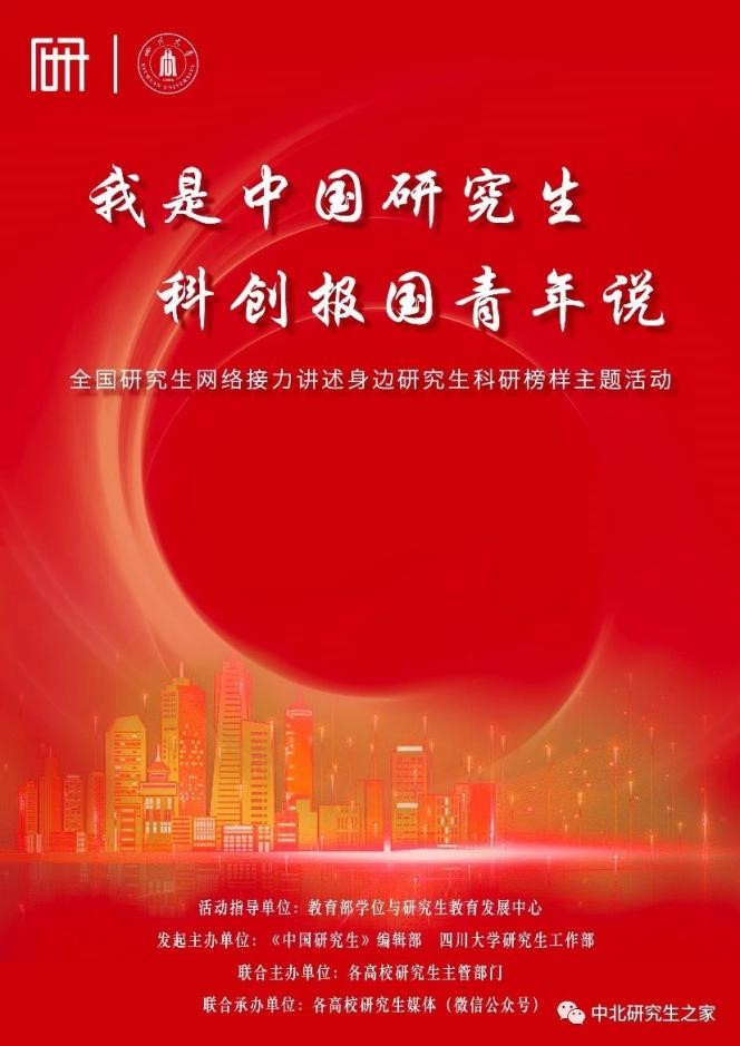 为深入学习贯彻党的二十大精神,开展好学习贯彻习近平新时代中国特色社会主义思想主题教育,进一步贯彻落实习近平总书记关于创新驱动发展战略的重要论述,激励当代青年研究生深刻把握“国之大者”,勇攀科研高峰、立志科创报国,主动融入服务国家重大发展战略,积极推进关键核心技术攻关,2023年,由教育部学位与研究生教育发展中心指导,《中国研究生》杂志联合四川大学研究生工作部共同发起,百家研究生培养单位研究生工作部门联合主办了“‘我是中国研究生,科创报国青年说’——全国研究生网络接力讲述身边研究生科研榜样主题活动”。该项活动得到研究生培养单位积极参与,近百所高校研究生共同讲述典型科创报国的青春励志故事,激发广大研究生勇攀高峰、敢为人先的创新精神。