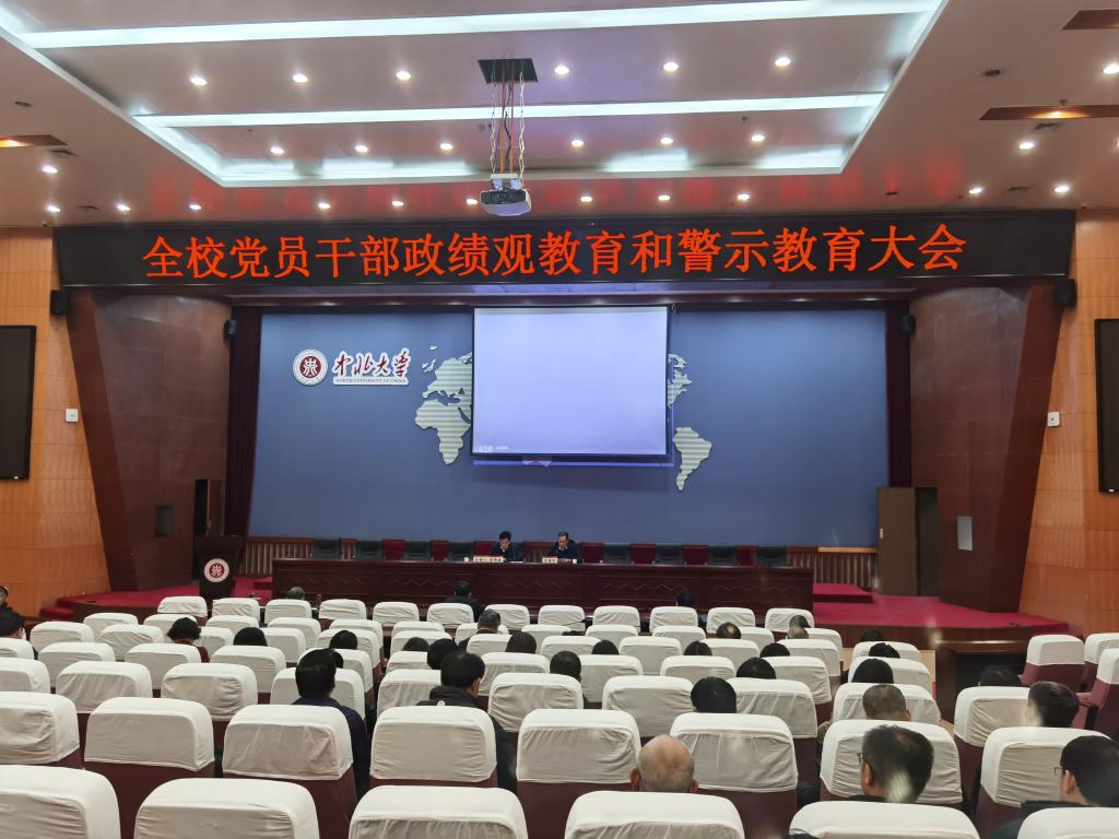 为推进主题教育持续走深走实,深化以案为鉴、以案明纪、以案说法,教育引导广大党员领导干部坚定拥护“两个确立”、坚决做到“两个维护”,树立和践行正确的政绩观,进一步强化责任担当、改进工作作风,12月12日,我校召开处级以上党员干部政绩观教育和警示大会。全体在校校领导出席会议。校党委副书记雷锋斌主持会议。