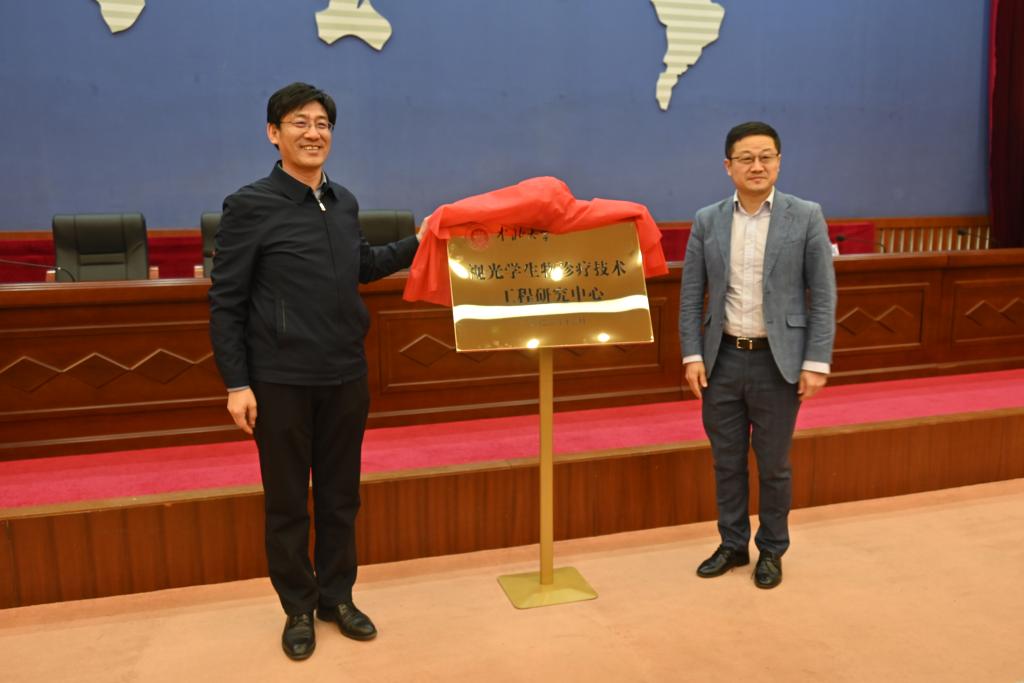 来志斌宣读了《关于成立“中北大学视光学生物诊疗技术工程研究中心”的通知》,并为中心揭牌。