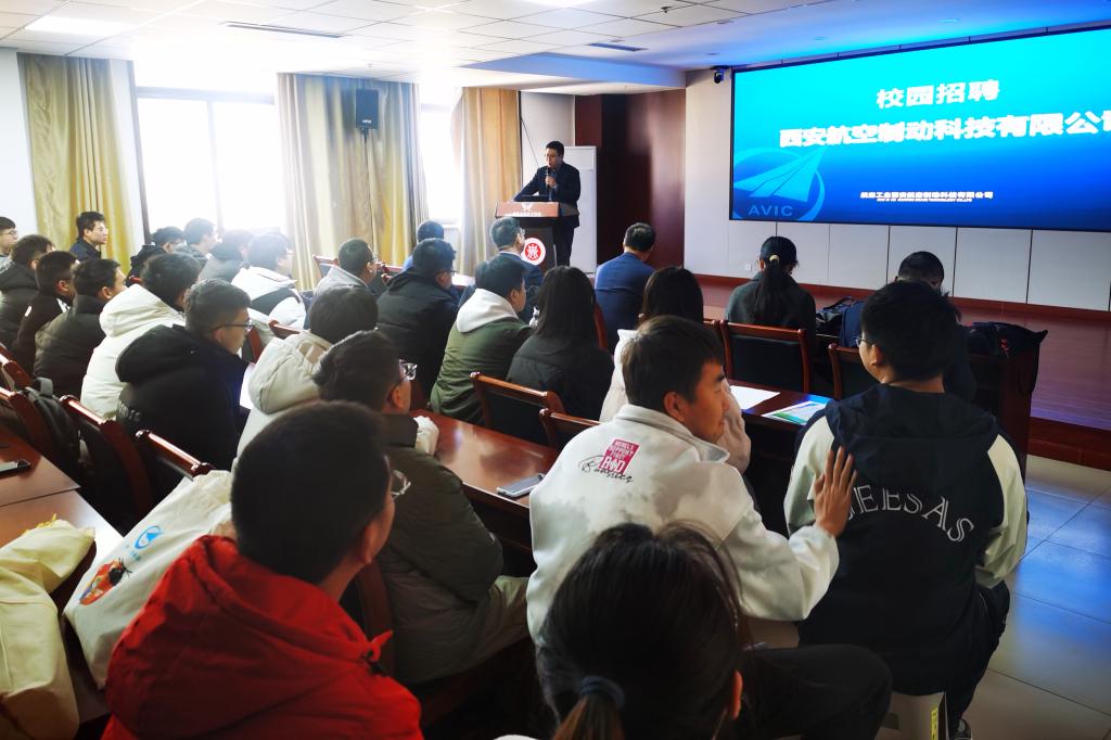 3月7日上午,西安航空制动科技有限公司党委书记、董事长付鹏锋一行来校进行校企合作调研交流并在会后组织专场招聘宣讲。校长陈钱、副校长蔡江辉出席座谈会。我校办公室、招生与就业工作部负责人参加座谈。