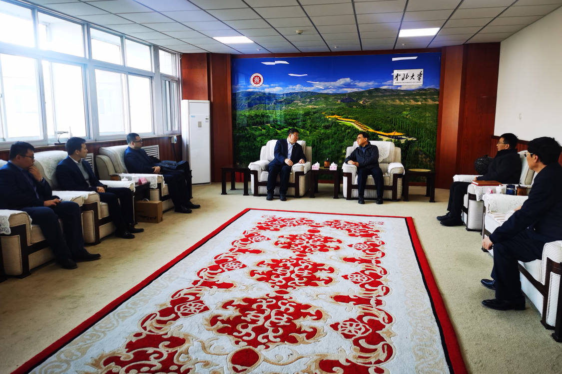陈钱代表学校对付鹏锋一行来校交流表示热烈欢迎,并简要介绍了学校的基本情况。他表示,付鹏锋书记带队来校调研,是企业对学校的认可和对校企合作、招才引智工作的重视。他指出,中北大学与航空工业系统单位合作广泛、渊源深厚。中北学子秉承“人民兵工第一校”的优良传统,国防情怀浓郁,对企业认可度高。希望校企双方进一步加强交流,在产学研就等各个方面开展更深层次合作,共谋广阔发展前景,为国防军工建设贡献双方更多的智慧和力量。