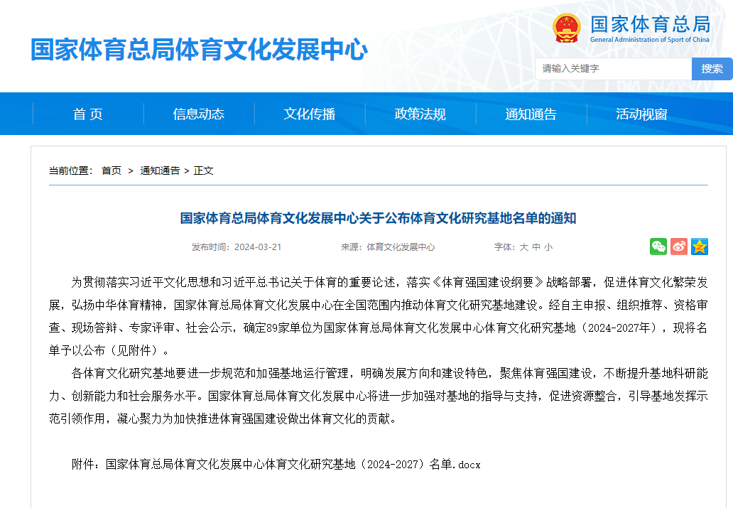 为贯彻落实习近平文化思想和习近平总书记关于体育的重要论述,落实《体育强国建设纲要》战略部署,促进体育文化繁荣发展,弘扬中华体育精神,国家体育总局体育文化发展中心在全国范围内推动体育文化研究基地建设。我校体育学院紧密结合山西省丰富的体育文化资源以及我校的办学特色和优势,经过严格的资格审查、现场答辩、专家评审及社会公示等环节,最终成功获批国家体育总局体育文化研究基地,这标志着我校在体育文化领域的研究与发展迈上了新的台阶。