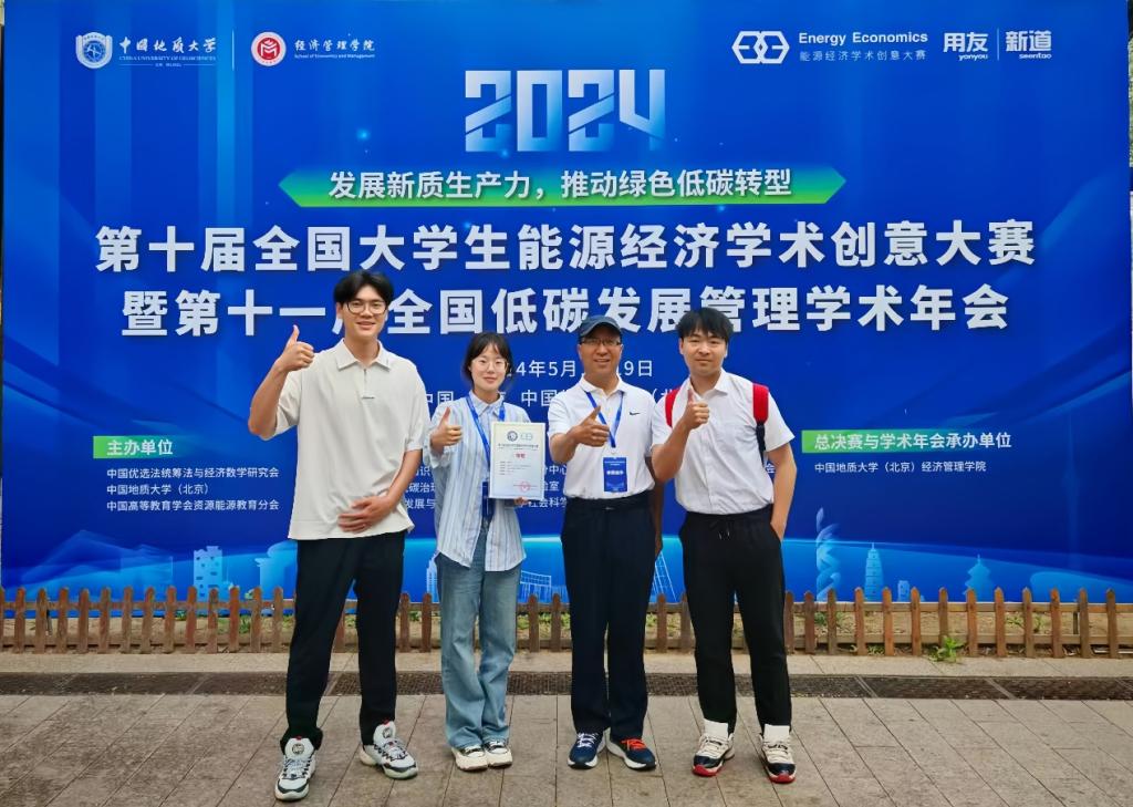 5月18日-19日,第十届全国大学生能源经济学术创意大赛在中国地质大学(北京)落下帷幕。由我校陈够喜、唐道光老师指导的软件学院大三学生李文涛、冀贤懋、周圆梦(女)、冯国强等四人组成的“智换蓝天”团队,荣获国家级一等奖。