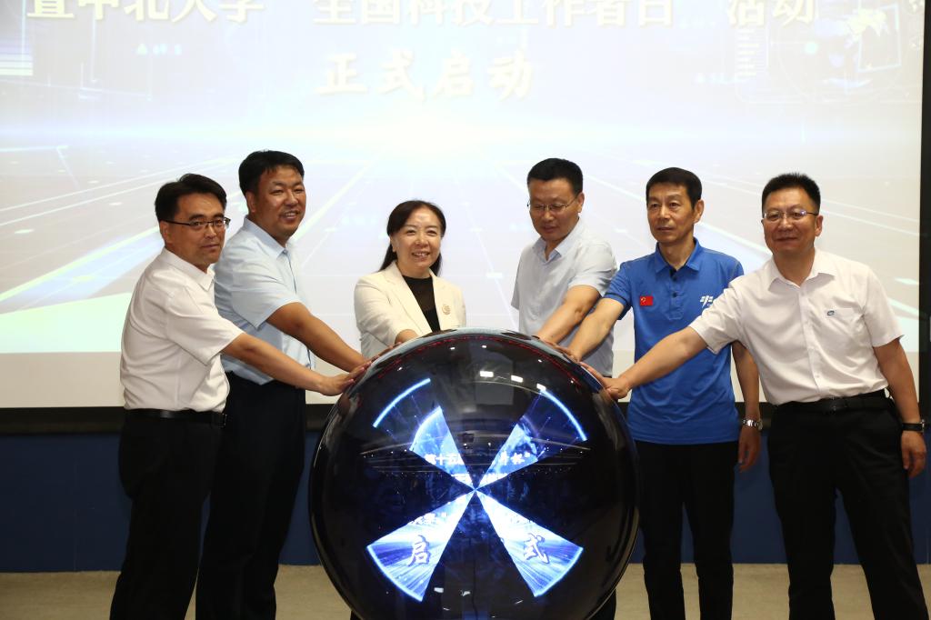 仪式最后,谭丽红、燕登峰、任兆欣、赵传东、尹建平触摸水晶球,共同开启第十五届“北斗杯”大赛山西赛区选拔赛暨中北大学“全国科技工作者日”活动。