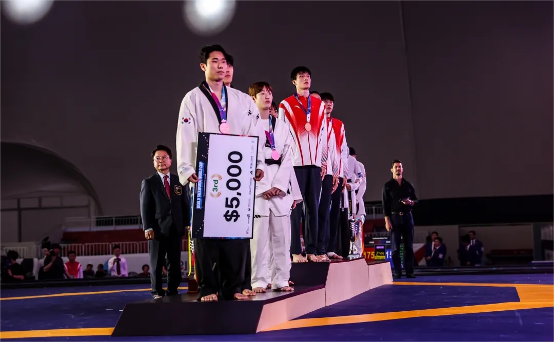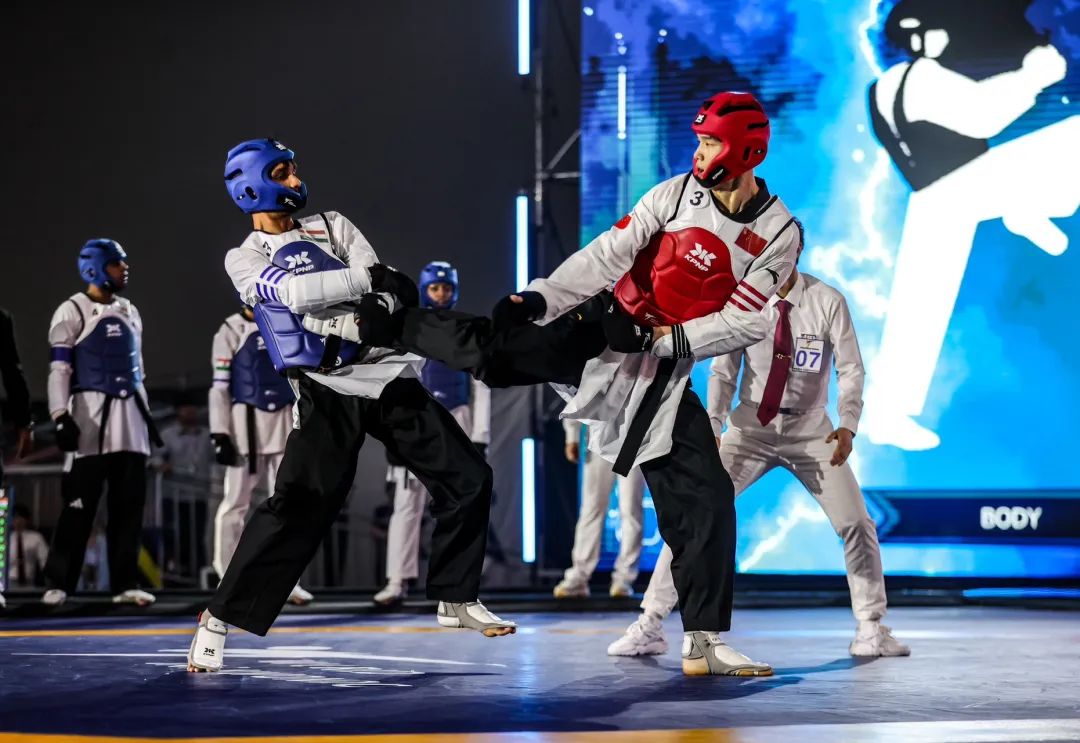 中国队派出张梦宇、肖树楠、孟明宽、项启彰四位选手仅参与混合团体组一项比赛的角逐,这也将是巴黎奥运会跆拳道混合团体表演项目的中国队阵容,因此,本次比赛是一次关键的奥运前哨战。决赛中,中国队迎战劲旅伊朗队,以硬朗的打法和默契的配合,最终以2比1的比分获胜。
