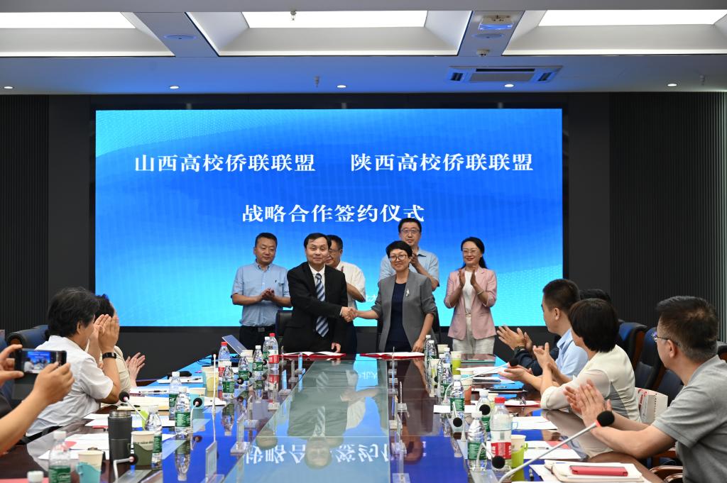 座谈会上,陕西高校侨联联盟秘书长锁志海、山西高校侨联联盟秘书长朱向梅分别代表双方签署两省高校侨联联盟战略合作协议。