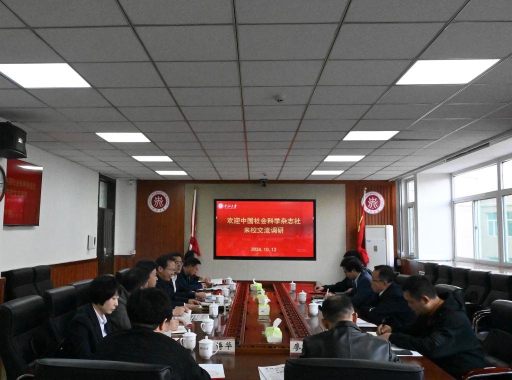 10月12日,中国社会科学杂志社副总编辑魏长宝一行来校调研交流。双方交流座谈会在德怀楼第四会议室召开。省委宣传部副部长杨建军、我校党委书记张晓永出席。会议由校党委副书记赵文军主持。