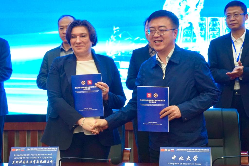 12月1日,中俄体育院校联盟2024年年会暨中俄体育高峰论坛在我校举行。中俄体育院校联盟中方轮值主席、首都体育学院校长张霞和圣彼得堡国立体育运动与健康大学校长格里什科夫·瓦季姆·费多罗维奇出席开幕式并代表双方致辞,表达了对中俄体育合作前景的高度期待。我校党委副书记赵文军致欢迎辞并与莫斯科国立体育与旅游大学副校长列昂蒂瓦·玛利亚代表双方签署了合作备忘录,标志着两校正式建立友好合作关系。我校副校长来志斌主持开幕式。