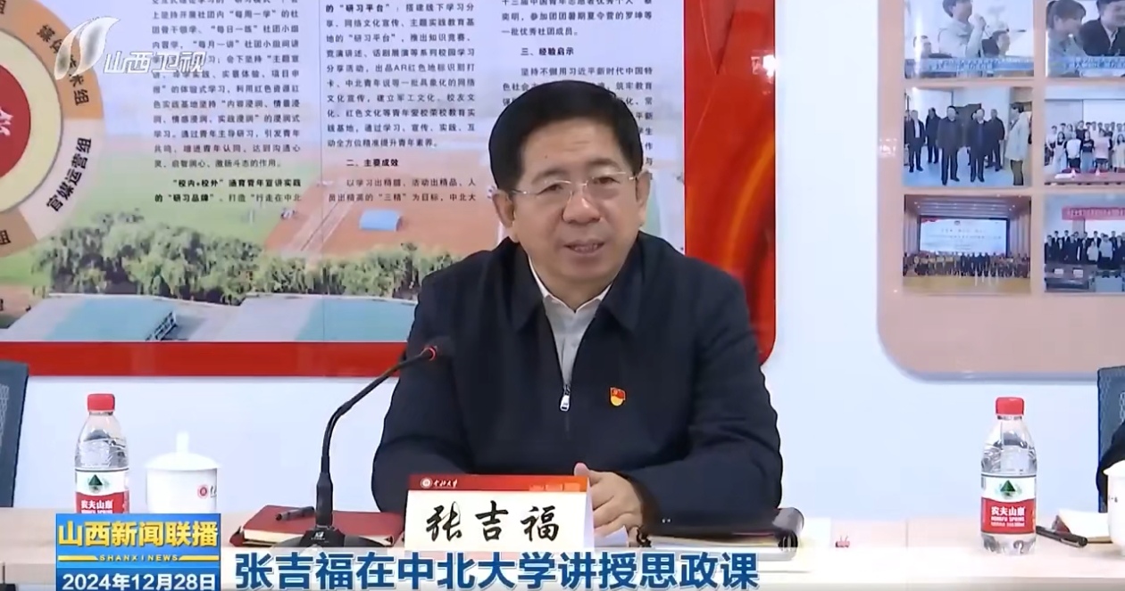 12月28日,省委常委、宣传部部长张吉福来到我校,以“深入学习贯彻习近平文化思想 加快推动文化强省建设”为题,为师生讲授思政课并进行座谈交流。