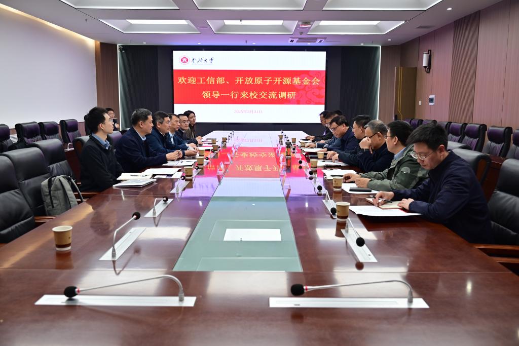 3月31日下午,工业和信息化部副司长王威伟、开放原子开源基金会理事长兼秘书长程晓明一行来校调研交流。校长陈钱出席调研座谈会。山西省工业和信息化厅及我校各相关部门、学院负责人参加会议。