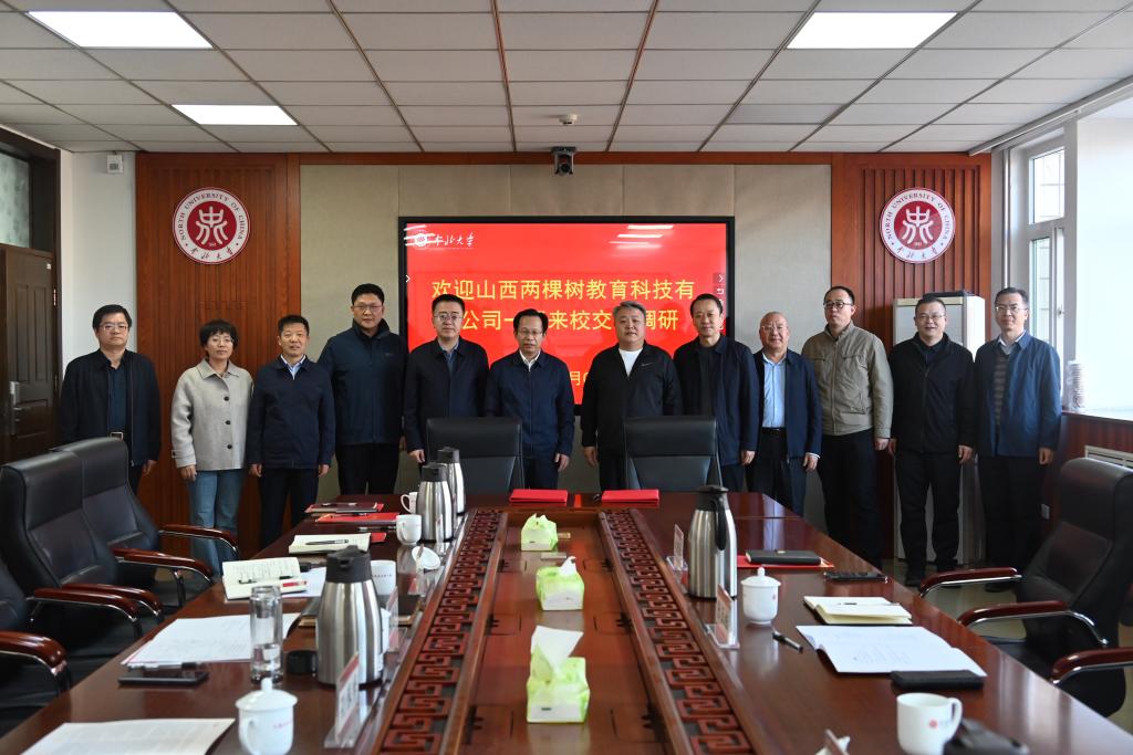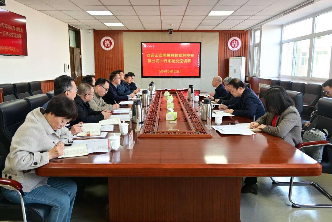 4月2日,山西两棵树教育科技有限公司董事长张玉栋一行来校调研交流,并与我校签署教育咨询与产业技术合作协议。校党委书记张晓永出席调研座谈会。校党委副书记赵文军主持座谈会。我校各相关学院和部门负责人参加会议。