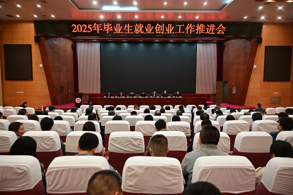 为深入落实党中央、国务院的决策部署和省委、省政府关于2025届毕业生就业工作的安排,4月7日上午,我校召开2025届毕业生就业创业工作推进会。全体在校校领导出席会议。各学院及相关职能部门负责人、负责就业工作的辅导员参加会议。