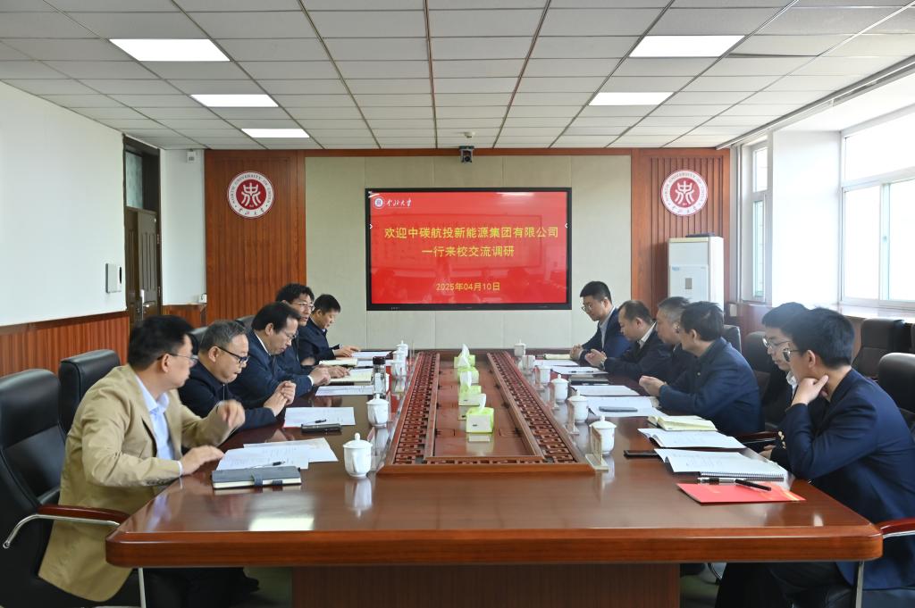 4月10日,中碳航投新能源集团有限公司党委书记、董事长白云峰一行来校调研交流。双方交流座谈会在德怀楼第四会议室召开。校党委书记张晓永出席。 副校长来志斌主持会议。