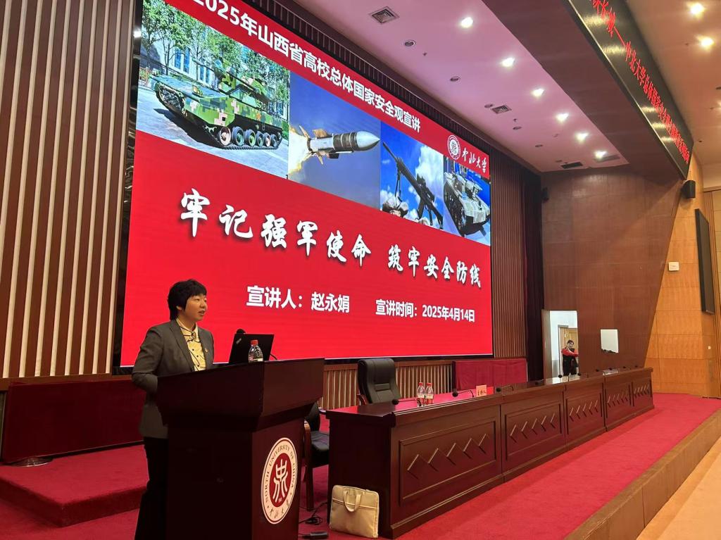 由山西省委教育工委、山西省国家安全人民防线建设领导小组办公室主办的山西省高校总体国家安全观宣讲比赛在山西师范大学举行。全省高校共44名选手参加,经过激烈角逐,比赛共评选出一等奖2名、二等奖3名、三等奖6名。我校选派赵永娟代表参赛,获得比赛总分第三名,二等奖的好成绩。赵永娟结合我校特色,以《牢记强军使命 筑牢安全防线》为主题,结合身边实际案例,从做好保密工作是党的优良传统,认识保密工作面临的严峻形势及我校凝心聚力做好新时代保密工作的具体做法做了宣讲。