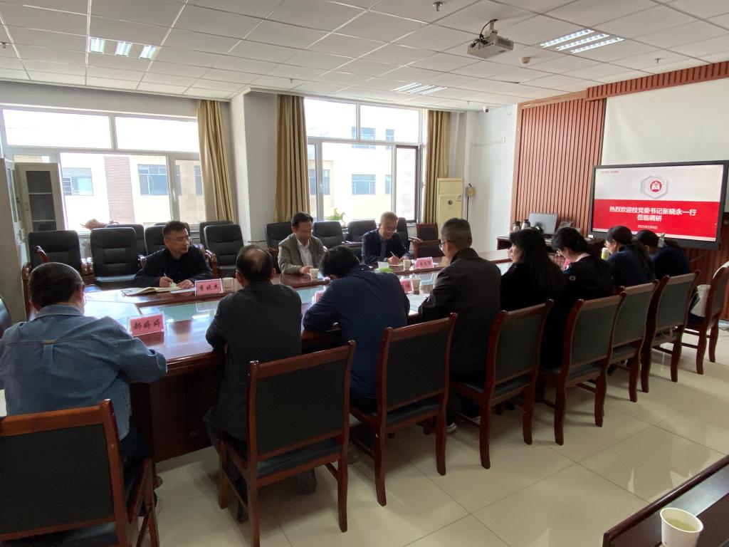 在实地走访调研学院办公环境、教师备课及教研条件后,张晓永对学院取得的工作成绩予以肯定与赞赏。并提出三 点要求:一要抓住主线,为党育人、为国育才,坚定社会主义办学方向;二要盯住关键,拓宽思路,创新办法,促进学院高质量发展;三要把握细节,深入师生开展调研,运用好调研成果,解决好师生关注问题,推动和谐校园建设。