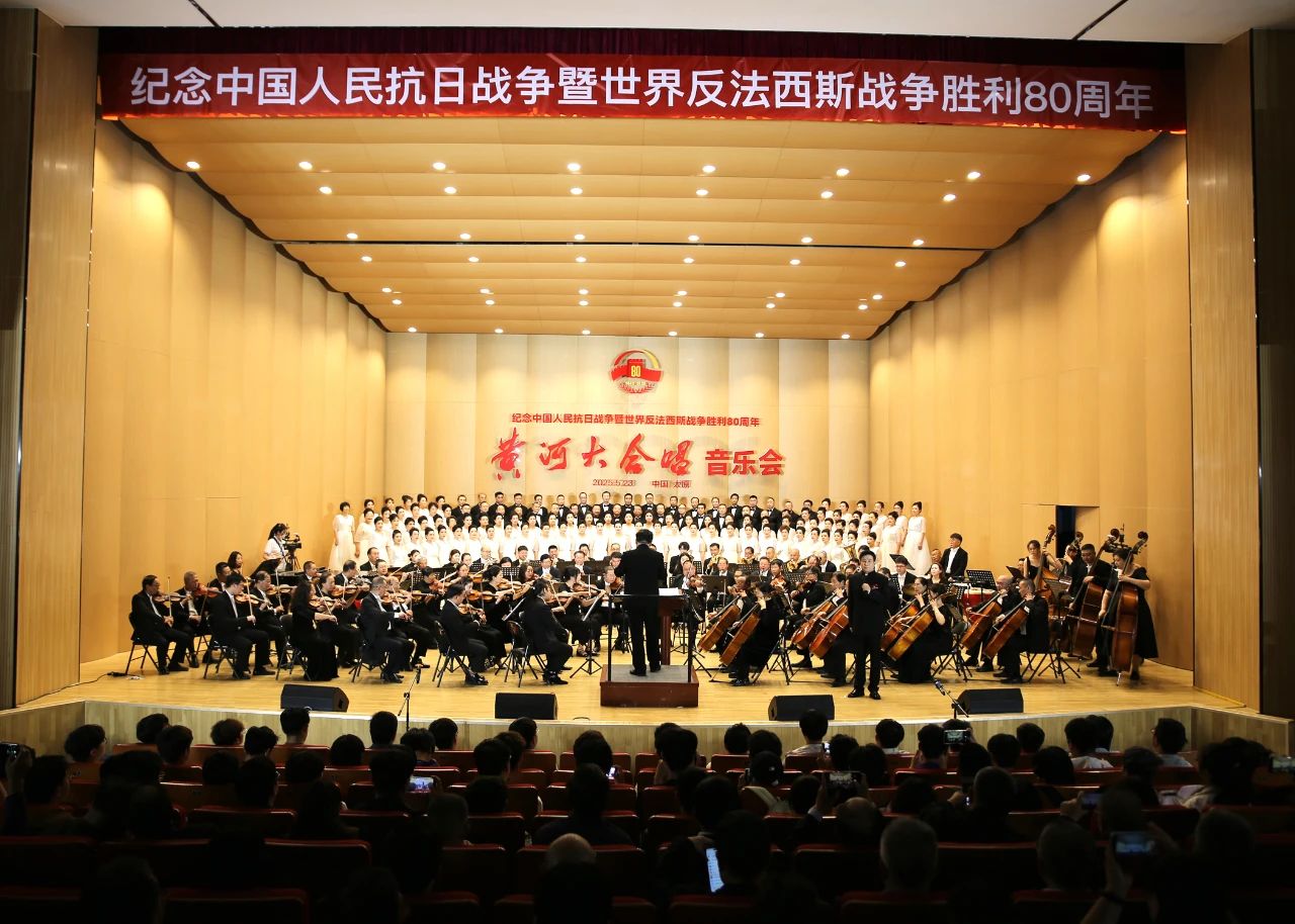 音乐会以《红旗颂》开场,《我的深情为你守候》《把一切献给党》表达爱国情怀。下半场《黄河大合唱》全乐章响起,全场气氛热烈,合唱团与交响乐团配合默契,将观众带回抗战年代。最后,全体演员和观众合唱《怒吼吧!黄河》,将气氛推向高潮。