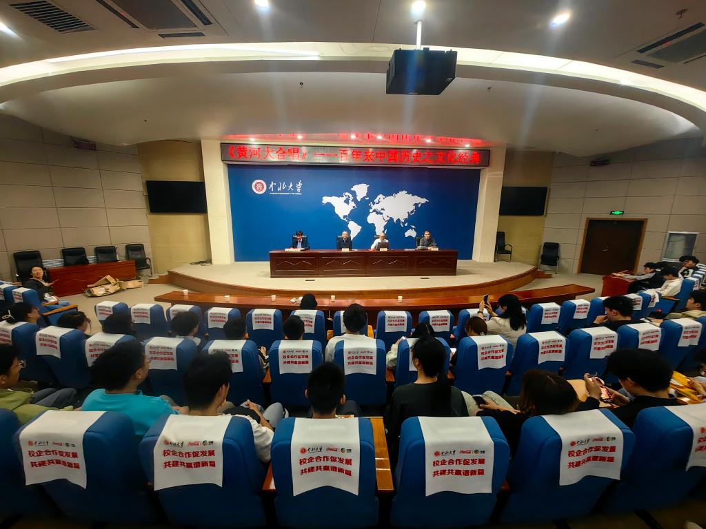 活动期间,“《黄河大合唱》——百年来中国历史之经典”讲座在瑾瑜国际会议中心举办。副校长来志斌出席并致辞。400余名师生代表参加。