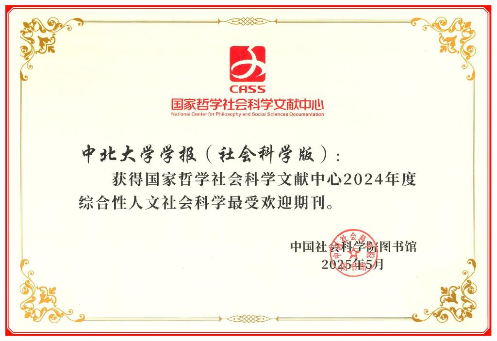 近日,学术期刊高质量发展研讨会暨国家哲学社会科学文献中心最受欢迎期刊报告发布会在京举行。会议发布了《国家哲学社会科学文献中心最受欢迎期刊报告(2024年度)》《国家哲学社会科学文献中心用户使用分析报告(2024年度)》。《中北大学学报(社会科学版)》获评国家哲学社会科学文献中心2024年度综合性人文社会科学最受欢迎期刊。