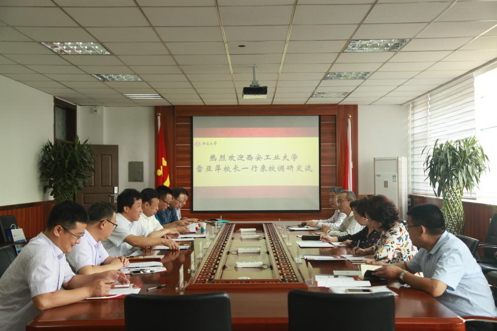 9月13日上午,西安工业大学雷亚萍校长带领总会计师段小存,校长助理、财务处长刘卜,总务处处长、资产公司总经理祁玉龙,党办、校办副主任王守民一行五人来校调研。座谈会在德怀楼第四会议室举行,校长刘有智、副校长雷锋斌及财务处、后勤管理处、发展规划处、信息商务学院、党办校办、国有资产管理处等部门负责人参加了座谈,会议由副校长雷锋斌主持。