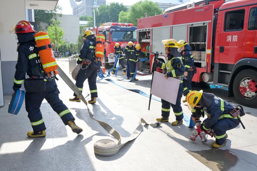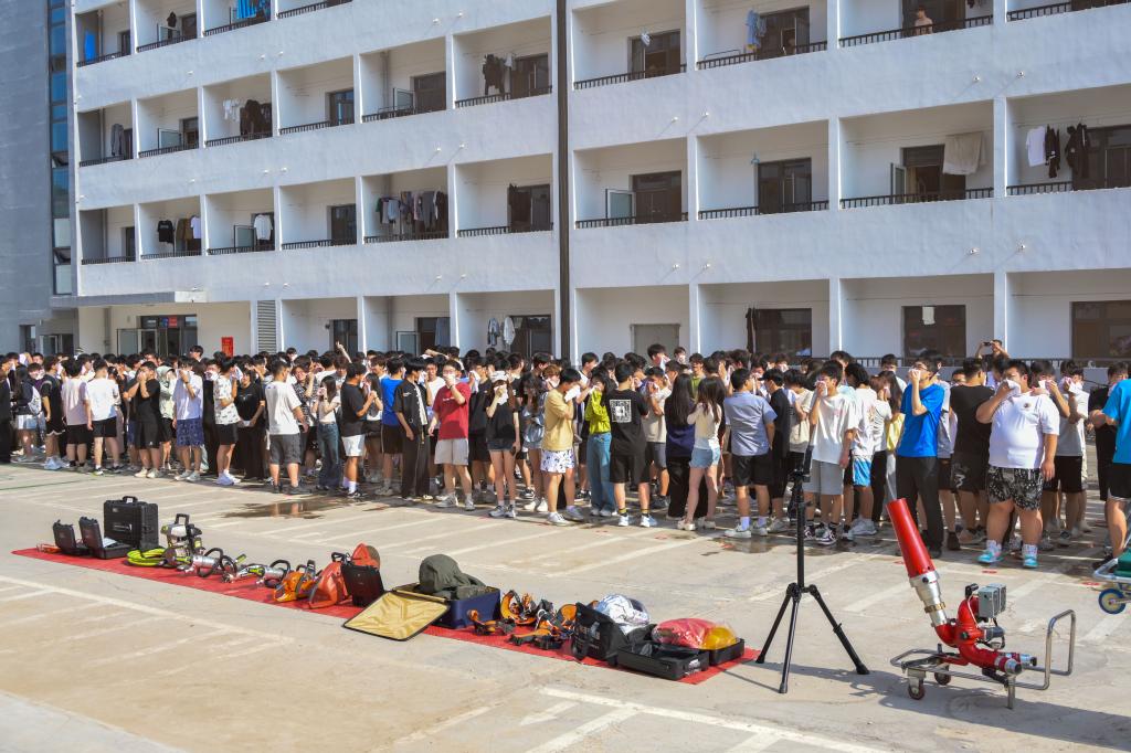演练结束后,相关部门组织全体参演学生在指定区域开展灭火器、消防栓实践实操考核。