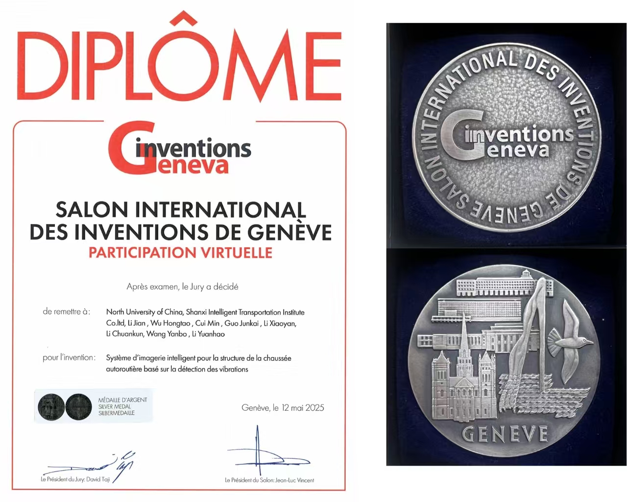 近日,第50届日内瓦国际发明展对外公布获奖名单,由我校信息与通信工程学院李剑教授团队牵头,联合山西省智慧交通研究院申报的《Intelligent imaging system for highway subgrade structure based on vibration detection》,从全球40个国家和地区的1000余项创新成果中脱颖而出,获发明展银奖。
