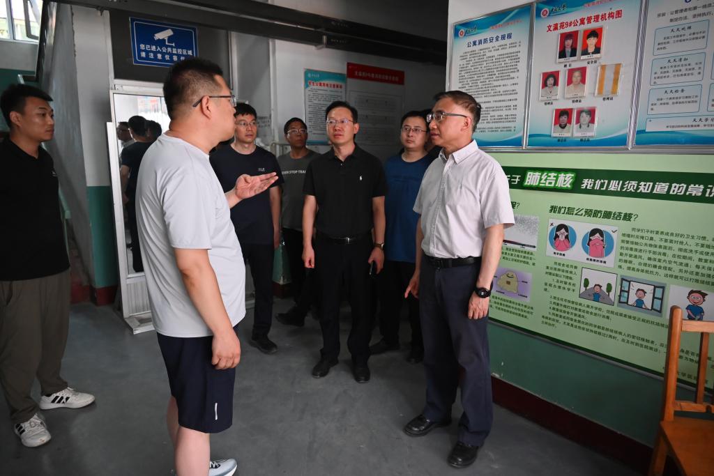 陈钱强调,新生宿舍是学生在校生活的重要场所,直接关系到新生对学校的第一印象和在校学习生活的体验感。各相关部门要进一步强化责任意识,严守工程质量与安全底线,确保各类设施设备正常稳定运行;要精细做好宿舍卫生清理、生活用品配置等收尾工作,全力为新生打造整洁、安全、温馨的居住环境;同时要提前规划优化新生入住流程,细化服务举措,主动预判并及时解决入住可能出现的问题,让新生切实感受到学校的关怀与温暖,确保新生顺利入学、舒心生活。