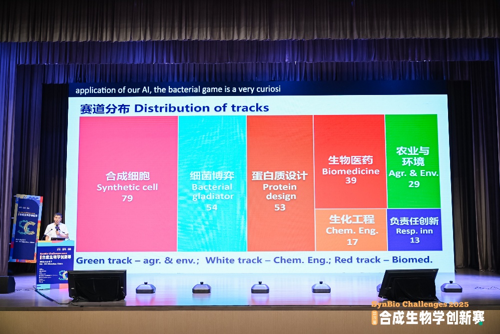 作为2022年创办的赛事,大赛始终秉持“造物致知、造物致用”核心理念,吸引力进一步增强——来自中国、日本、俄罗斯等多个国家和地区的265支高校队伍、近1900名青年英才参赛,在队伍数量与国际化程度上均创历届新高。赛事设置的七大赛道特色鲜明,涵盖工业应用(白色赛道)、农业与环境(绿色赛道)、健康医疗(红色赛道)、微生物策略博弈(细菌博弈赛道)、蛋白质功能优化(蛋白设计赛道)、生命底层构建(合成细胞赛道)及伦理安全(负责任的生命科技创新赛道),紧密围绕全球可持续发展核心议题,为青年科研者提供了解决实际问题的广阔舞台。