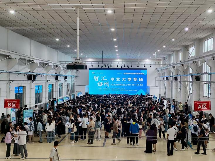 9月5日,“智汇台州”全国高校巡回招聘中北大学专场招聘会在我校东区训练馆顺利举行。作为我校为2026届毕业生组织的首场招聘会,本次活动汇聚21家台州优质企业,其中上市公司8家,累计提供岗位需求1307个,招聘规模与覆盖范围均处于较高水平。