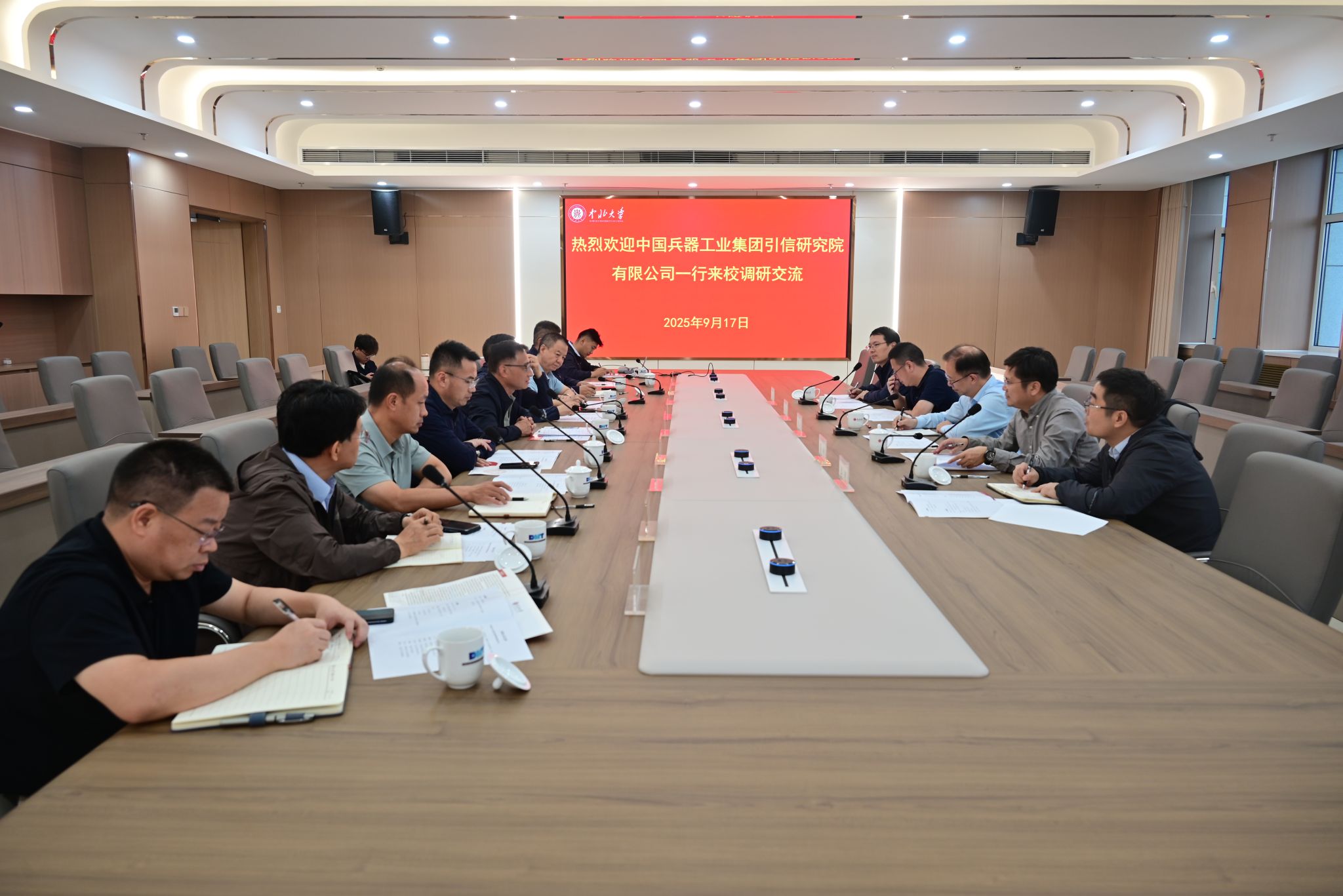 9月17日,中国兵器工业集团引信研究院有限公司党委书记、董事长邹勇带队来校调研,校长陈钱、副校长刘俊出席座谈会。