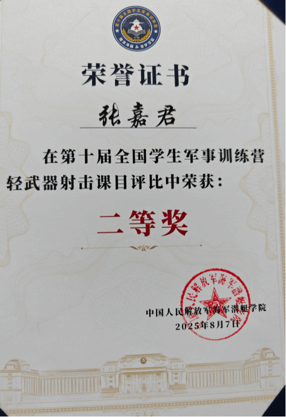 近日,教育部、中央军委国防动员部正式公布第十届全国学生军事训练营成绩。我校2024级牛思蕊、李月、张嘉君、何永旺四名同学组成代表队,作为山西高校代表参赛,最终斩获个人二等奖2项、集体三等奖1项,其中1名同学获评“优秀学员”。这是我校第四次代表山西高校参加全国学生军事训练营并获优异成绩。
