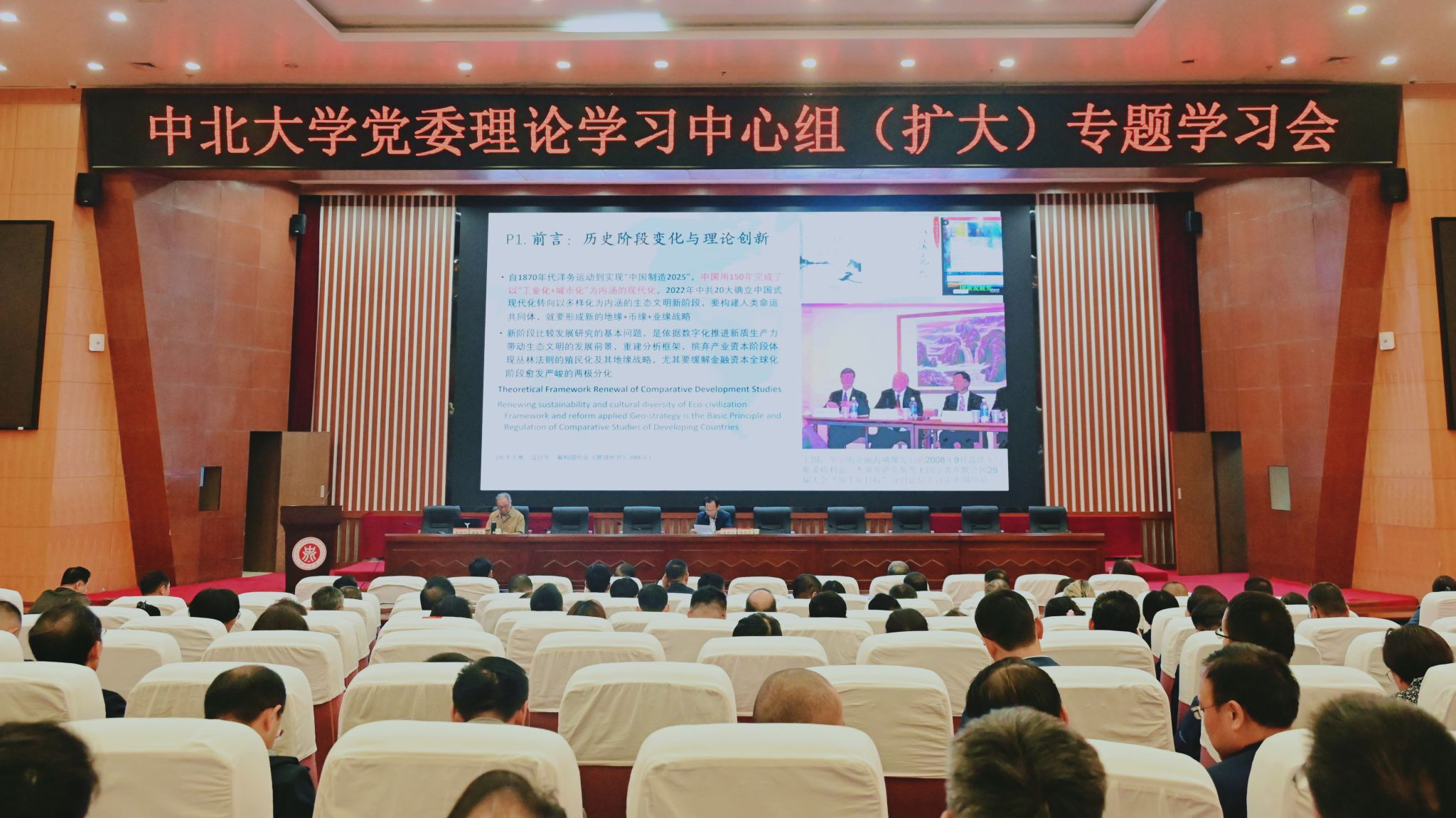 9月24日,校党委理论学习中心组(扩大)专题学习会在图书馆五层学术报告厅召开。温铁军教授应邀来校做《全球化“解体”与国家战略演变》专题报告。校党委书记张晓永主持会议。校党委理论学习中心组成员,全体处级干部,辅导员、组织员、党支部书记双带头人、思政课教师等代表参加。