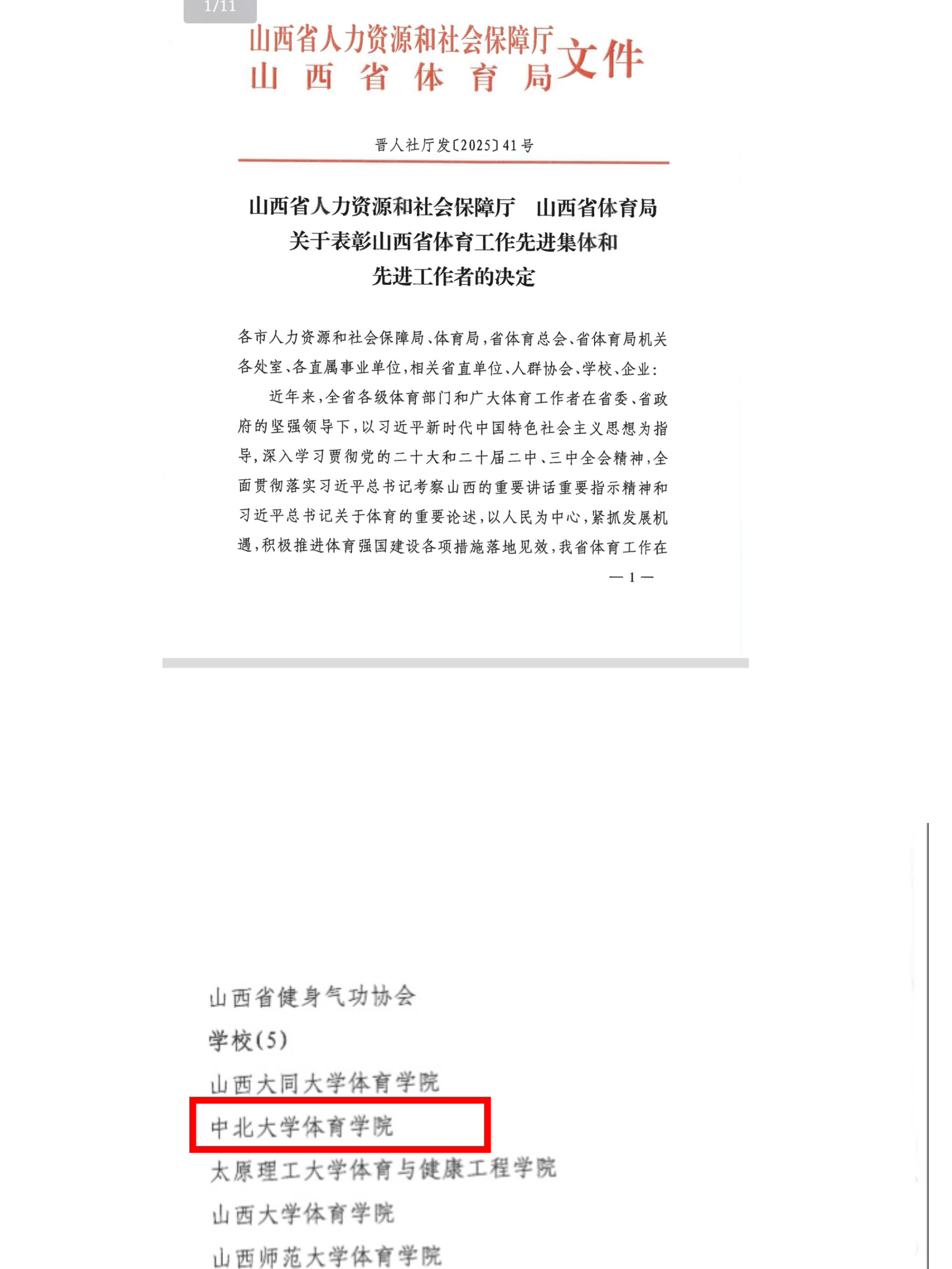 近日,我校体育学院获山西省人力资源和社会保障厅、山西省体育局联合授予的“山西省体育工作先进集体”称号,标志着学院在体育教学改革、人才培养与社会服务等领域的工作获省级权威认可。