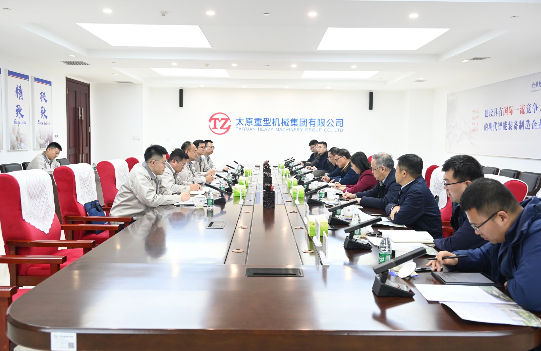 座谈开始前,陈钱一行参观了太重集团展览中心,详细了解企业发展历程及在重型机械、高端装备制造、风电新能源等领域的成果。