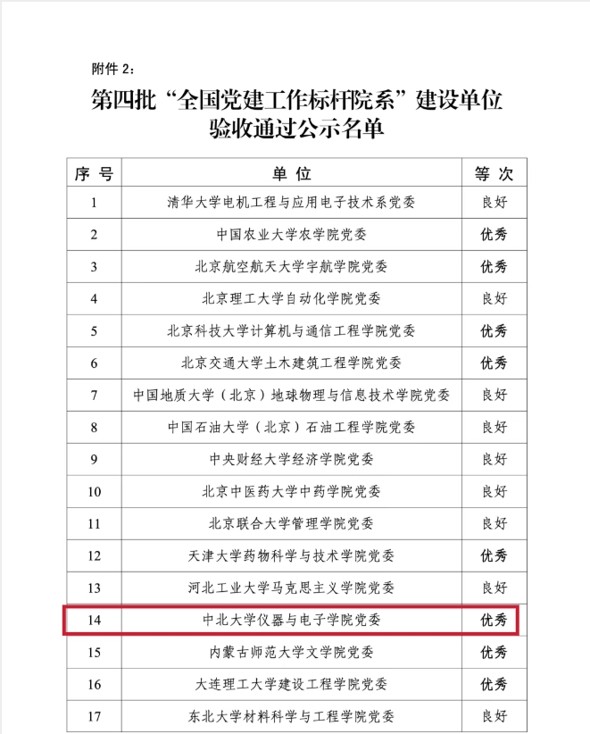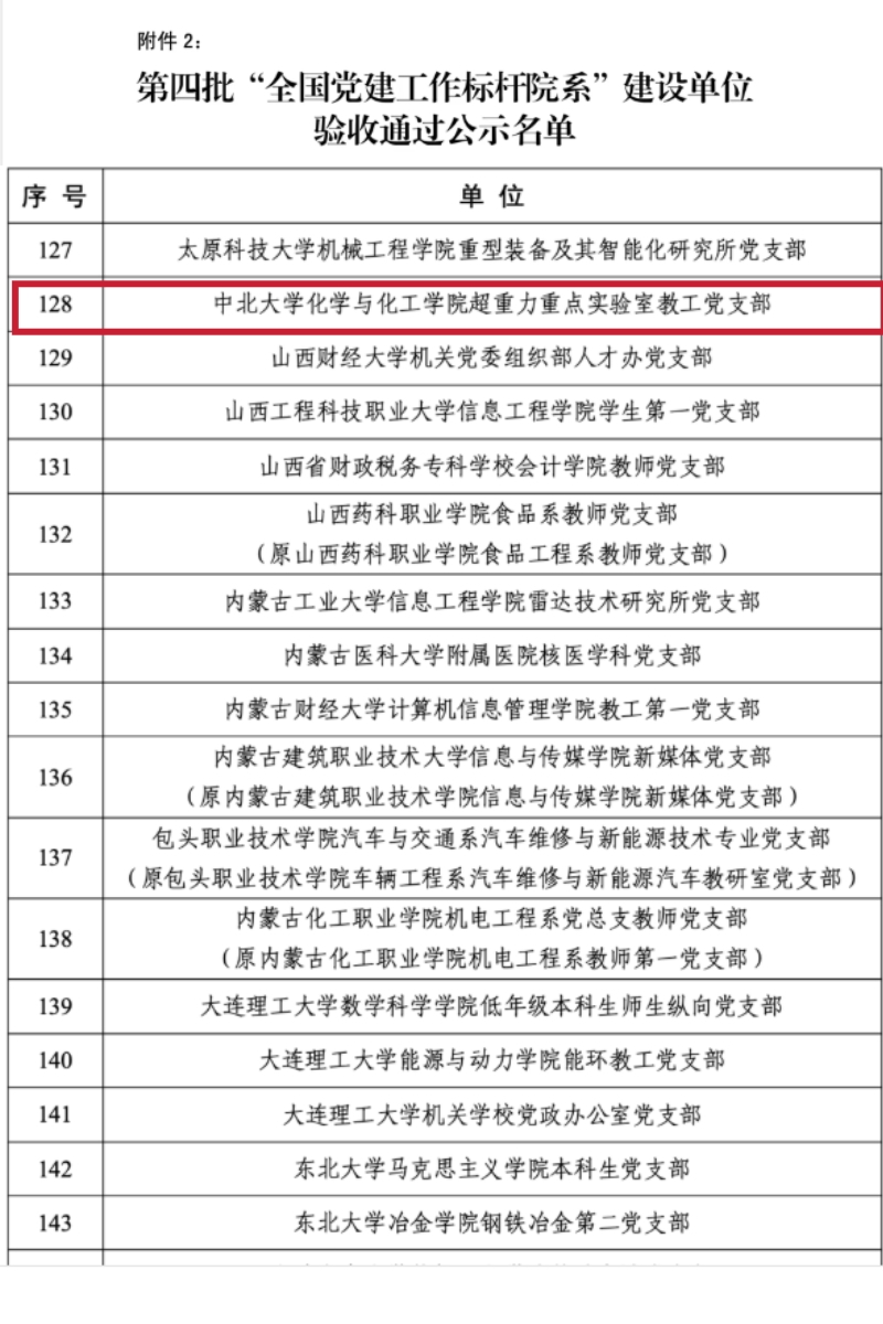 近日,教育部公布第四批新时代高校党建示范创建和质量创优工作验收结果。我校仪器与电子学院党委获评的“全国党建工作标杆院系”,顺利通过验收并荣获“优秀”等次,是全省高校中唯一获此荣誉的基层党委;化学与化工学院超重力重点实验室教工党支部获评的“全国党建工作样板支部”,也顺利通过验收。