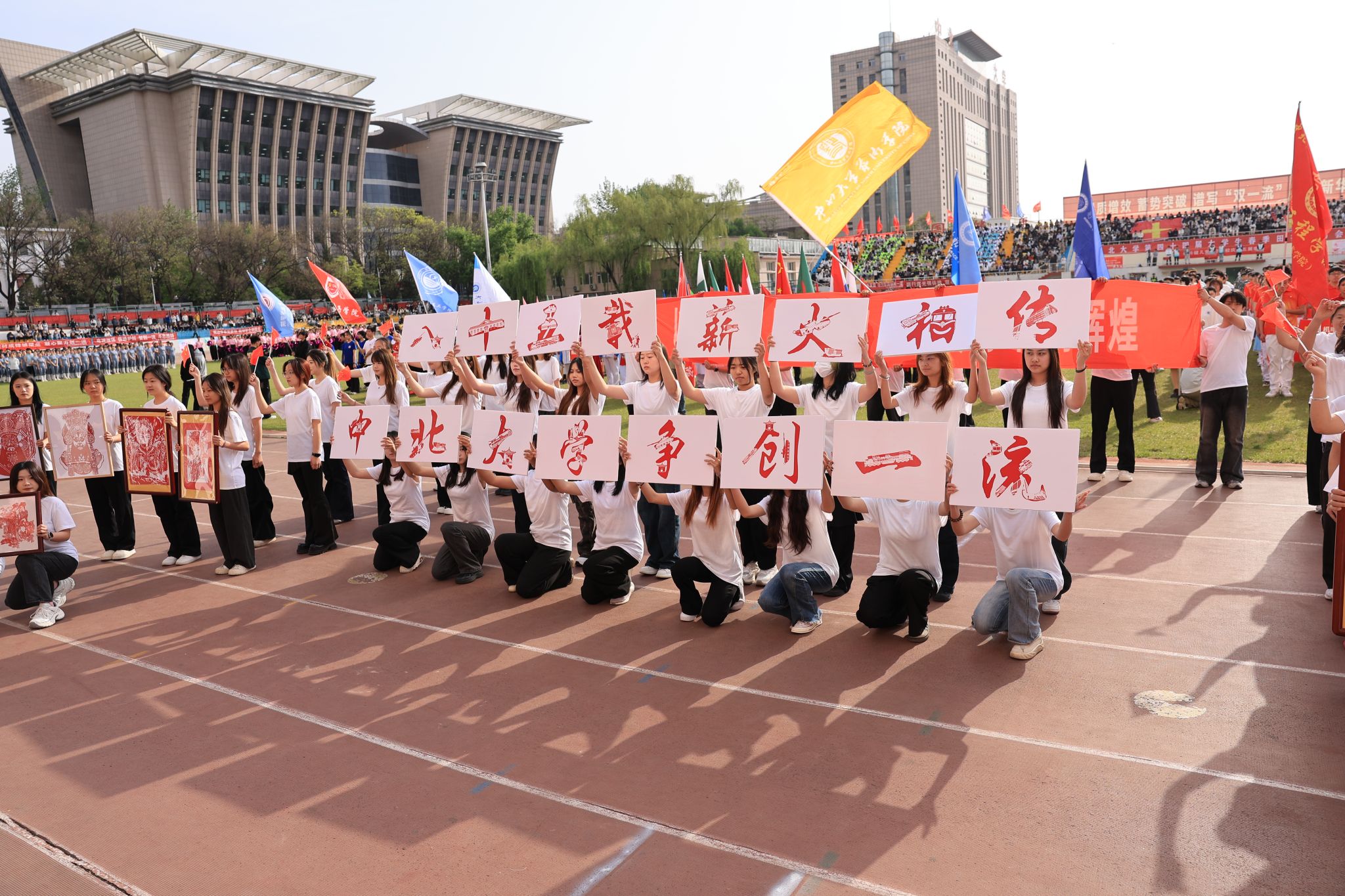 团体操表演分“砺剑”“沉淀”“跃动”“奋进”四个篇章,在雄浑与悠扬交织的旋律中,方阵依次变换出1941、太行、1958、太机、2004、中北、85等经典印记,红旗猎猎与身姿舒展相映,刚健武术与柔美韵律相融,一动一静、一收一放间,尽显中北学子传承兵工精神、聚力争创“双一流”的昂扬风貌与磅礴力量。