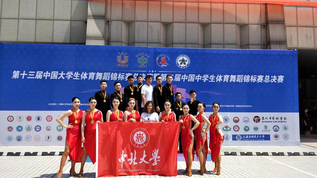 第十三届中国大学生体育舞蹈锦标赛暨第二届中国中学生体育舞蹈锦标赛总决赛于4月28日–29日在郑州大学举行。经过预赛、半决赛、决赛层层突破,我校代表队最终获得1金(大学专业院校B组L队列舞)、1银(大学专业院校B组单项恰恰)、一个第4名(大学专业院校B组四项L)、一个第6名(大学专业院校B组三项L)和一个第7名(大学专业院校B组二项L)的好成绩,为学校争得了荣誉。