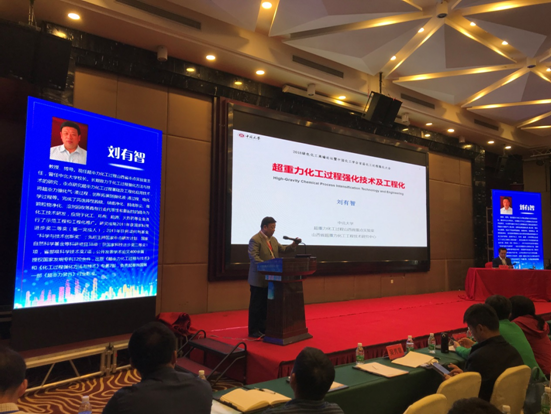 开幕式由大会执行主席陈建峰院士主持,舒兴田院士、胡永康院士、钱旭红院士、费维扬院士、谢在库院士、祝京旭院士在主席台就坐。中国化工学会副理事长兼秘书长华炜、化学工业出版社长周伟斌、昆明理工大学王学勤校长出席开幕式。我校刘有智教授做了题为《超重力化工过程强化技术及工程化》的主题报告,从强化超重力强化传递与反应出发,基于不同的处理要求和特点,提出四种新型超重力机制,将超重力技术拓展至液液、气膜控制、电解等过程,丰富了超重力技术的理论与实践并在较多领域实现了工业应用,节能减排效果显著。