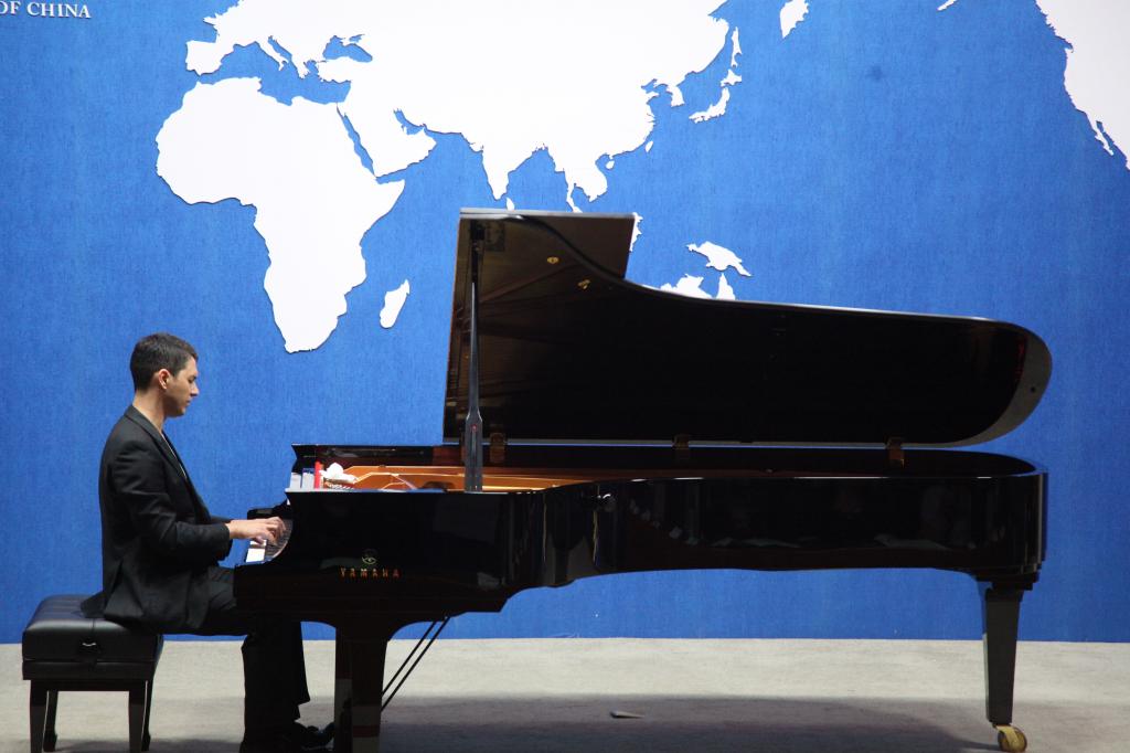 签约仪式后,交响乐团艺术家、雅马哈全球艺术家、瑞士韦尔比亚音乐节荣誉奖得主爱德华•昆斯为我校师生带来了高品质的钢琴独奏视听盛宴。斯卡拉蒂五首奏鸣曲、拉威尔夜之幽灵—三首钢琴音诗和三首匈牙利狂想曲等,一首首曲子的韵律在指尖舞动,演奏技艺与表演艺术完美结合。现场师生报以热烈掌声。