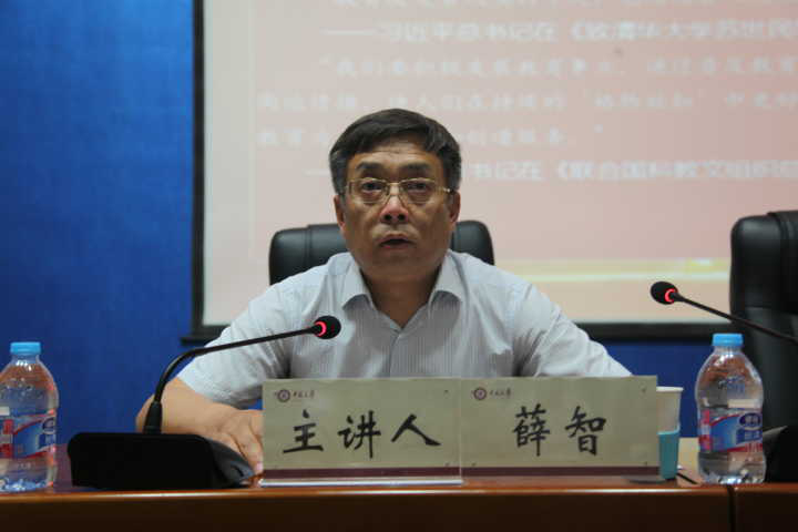 6月15日,校党委副书记薛智在我校做了题为《认真学习习近平总书记教育思想 履行好立德树人光荣使命》专题报告。报告中,薛智副书记从习近平总书记教育思想;准确把握习近平教育思想新要求,增强实现中华民族伟大复兴对教育发展的历史责任感紧迫感;提高政治站位,聚焦“四个服务”,切实履行立德树人光荣使命等三个方面切入,并结合我校实际,对习近平总书记教育思想进行了深入解读与剖析。