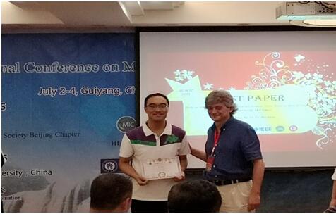 会议共进行8场分组讨论,我校陈晔、任一峰教授分别作为Session Chair 主持分组讨论,姚舜才、李大威、刘鹏三位老师的论文参加了会议交流,就控制系统建模、系统参数辨识与滤波等研究方向的热点问题进行深入广泛的讨论。其中姚舜才老师题为“Study on Modeling and State Estimation of Ultrasonic Motor Based on Data Driving”的论文获得大会最佳论文奖。
