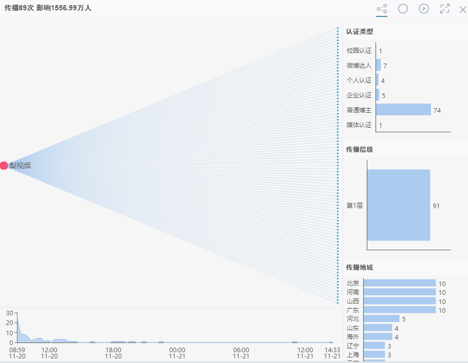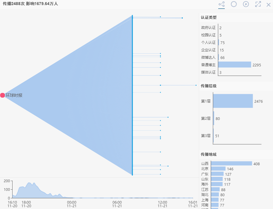 据鹰眼速读网分析,仅11月18日至11月21日期,全网关于本事件的微博数量就达7771条。