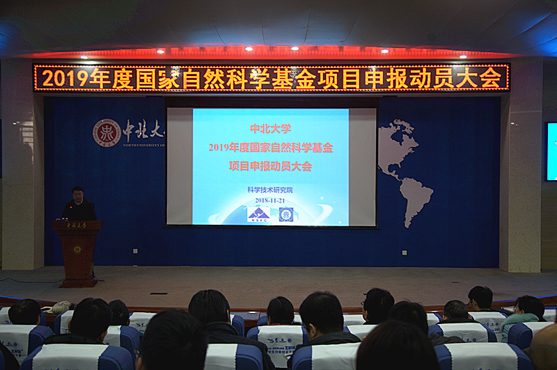 11月21日下午,我校2019年度国家自然科学基金项目申报动员大会在瑾瑜国际会议中心召开。校长沈兴全出席大会并讲话。太原理工大学王宝俊教授受邀作国家基金项目申报辅导报告。人力资源管理处、财务处等相关部门负责人及各学院院长、科研副院长、科研科科长和科研人员等约500余人参加会议。会议由科研院常务副院长桂志国主持。