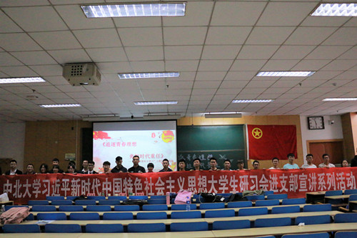 今年10月、11月,中北大学习近平新时代中国特色社会主义思想大学生研习会以“行走在中北的力量”为主题,走进各学院、各新生团支部、各学生社团开展系列宣讲活动。 在党的十九大召开一周年之际,作为我校2018年新生大学生涯规划主题教育活动的重点内容之一,展示了学习、研究、践行、弘扬习近平新时代中国特色社会主义思想成果,让习近平新时代中国特色社会主义思想在中北广大学子中入脑入心。