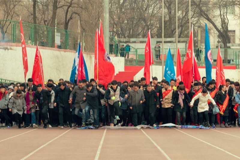 12月10日下午,我校在主体育场隆重举行纪念“一二九”运动83周年青年大学生爱国红色传递暨青春环校跑活动。来自16个学院的近千名学子参加长跑比赛。本次环校长跑全程约五公里,从主田径场出发,历经主楼、十号楼、北外环、医院、二龙山脚下、德怀楼、二道门、体育学院、中央大道最终回到田径场。随着一声清脆的枪响,参赛选手们在相关部门和学院领导的带领下冲破红线,拉开了本次冬日长跑的帷幕。活动中,无论是竞赛组还是群众组成员,大家都以十分的激情与冲劲,相互鼓励,全力奔跑。迈过终点的那一刻,无论男女、无论输赢,每一位参与者都忘掉了过程的艰辛,他们和在场的志愿者、观赛群众一起张开双臂,为冲向终点的的选手加油鼓劲、呐喊助威。通过活动展现了我校学子的顽强意志和团结向上的精神风貌。