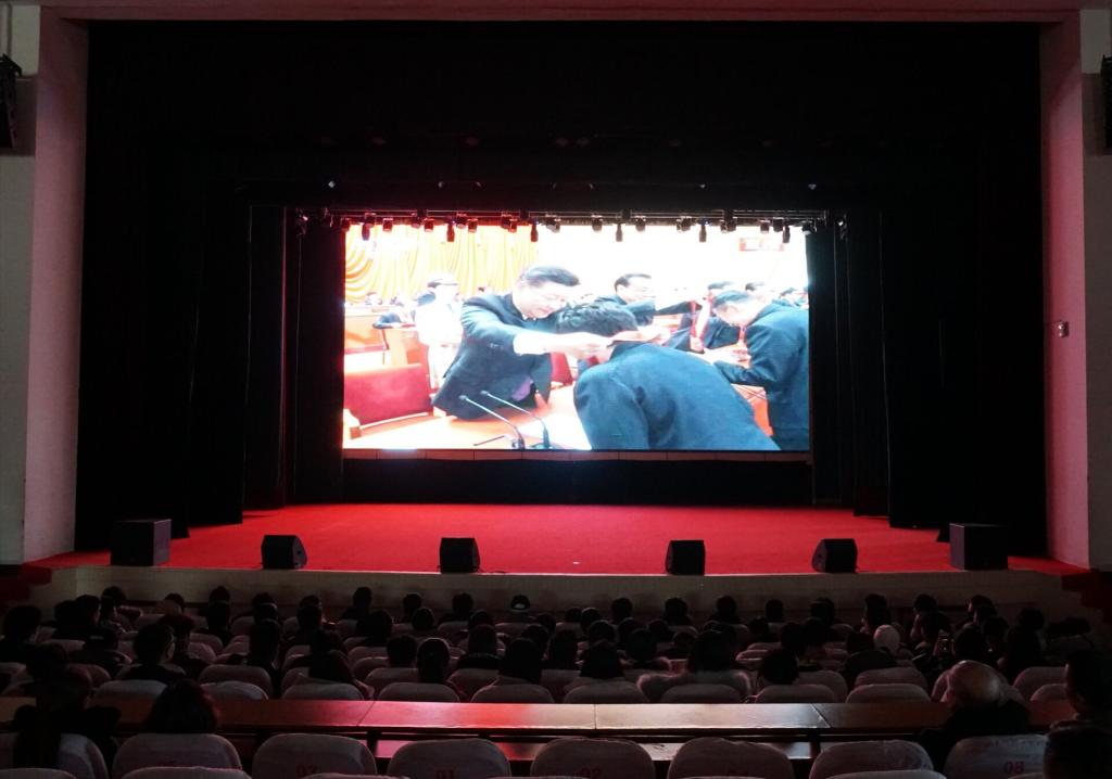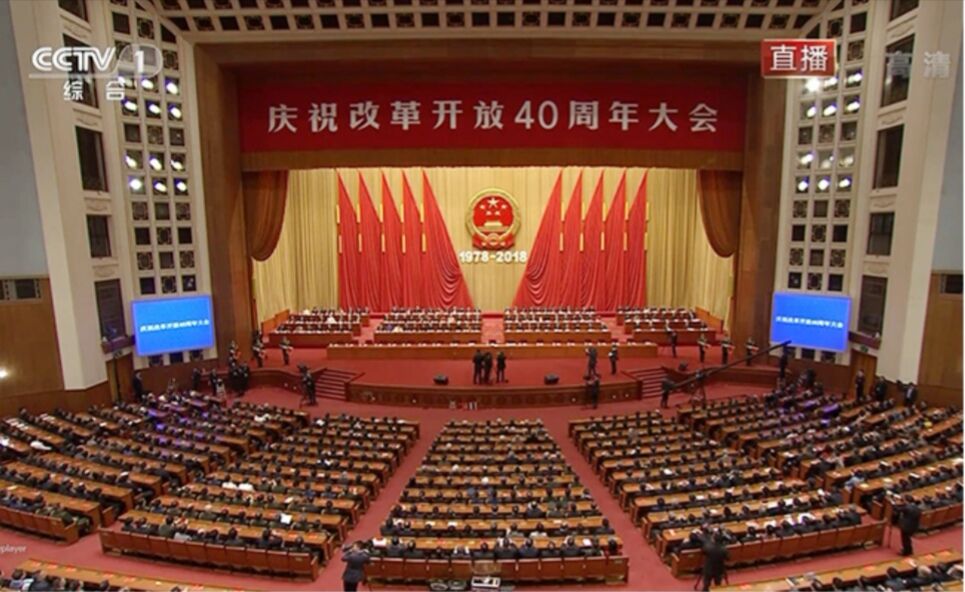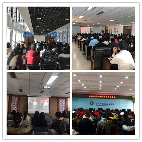 12月18日上午10时,庆祝改革开放四十周年大会在人民大会堂隆重举行。中共中央总书记习近平作重要讲话。大会授予100名同志改革先锋称号并颁授改革先锋奖章。同时向10名国际友人颁授中国改革友谊奖章。中央广播电视总台、新华网对大会进行了现场直播。我校师生热切关注大会召开。校领导、全体中层干部在科艺苑同步集中收看了大会直播。当会场奏响国歌,师生们全体起立,同大会现场的国家领导人、各界优秀代表们,一同高唱国歌。收看大会颁奖和总书记讲话过程中,大家不时报以热烈掌声。各学院、各基层党支部师生也同时通过电视、网络、广播、新媒体等不同形式及时收听收看了大会盛况。